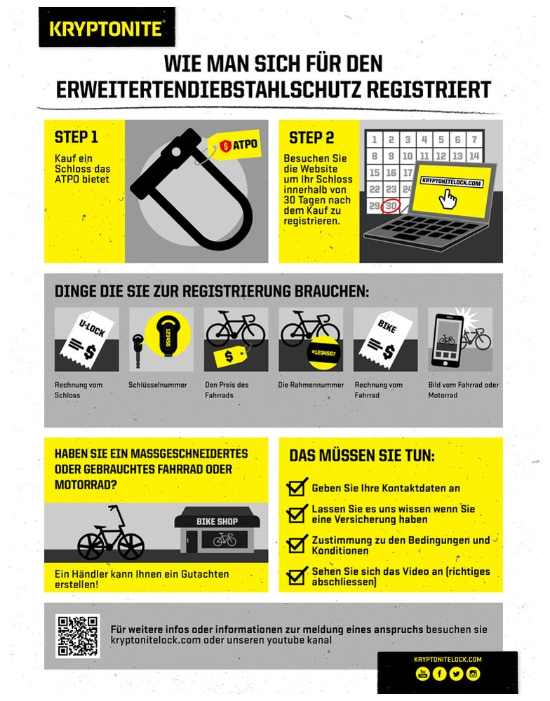 Le KryptoLok® 2 de Kryptonite a une anse de 12,7 mm d’épaisseur en acier spécial trempé qui est extrêmement résistante avec un double mécanisme de verrouillage. Le cylindre de fermeture interne Pick Safe™ anti-picking est protégé contre le perçage.